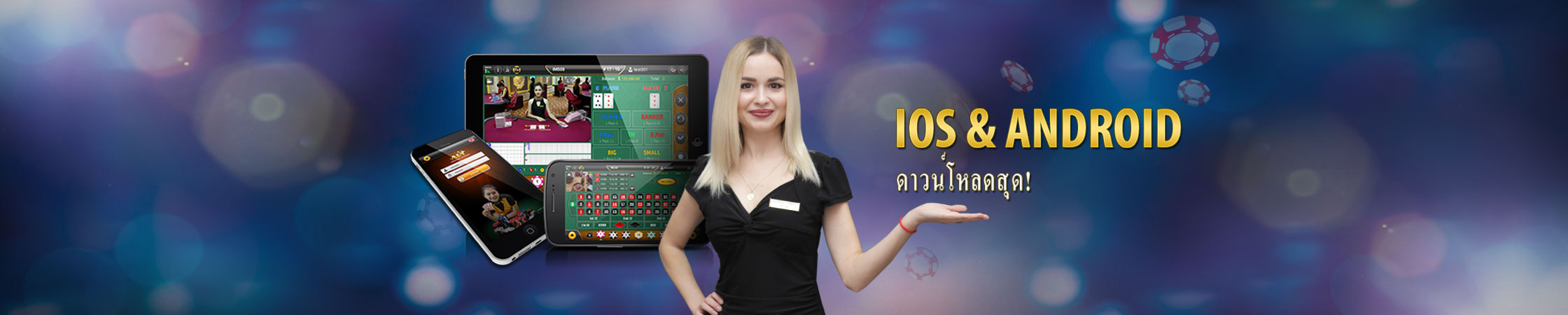 - ดาวน์โหลดแอพพลิเคชั่นตอนนี้ และให้ท่านสนุกเพลิดเพลินกับคาสิโนถ่ายทอดสดบนโทรศัพท์มือถือหรือแท็บเล็ตของคุณ!